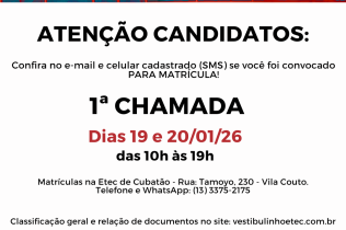 📢 ATENÇÃO, CANDIDATOS! 📌 O início da primeira chamada para: Ensino Médio Integrado Ensino Técnico Noturno 🗓️ Acontecerá nos dias 19/01 e 20/01, das 10h às 19h. ⚠️ Fiquem atentos às documentações necessárias