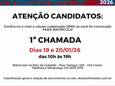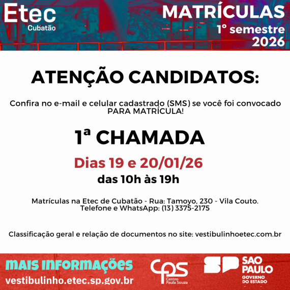 No dia 03/10 a Etec de Cubatão ofertará o simulado do Provão Paulista para os alunos do Ensino Médio Integrado a uma Habilitação Técnica; o simulado reproduz o formato e os conteúdos da prova oficial, […]